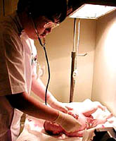 小児科の荻原先生が赤ちゃんの様子を確認。