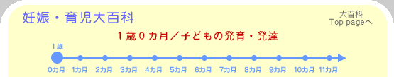 「ママ」「あーちゃん(ママのこと)」「パパ」「マンマ」「ブーブー」など、その子にとって関心のある言葉を1つか2つ言えるようになってくる頃です。ただの口真似ではなく、言葉の意味をわかって言うようになるのがこの時期の特徴で、たとえばママの姿が見えないと、自分のそばに来てという気持ちで「あーちゃーん」と呼んだり、自動車好きの男の子は通りかかった車を見て「ブーブー」とうれしそうに言ったりします。